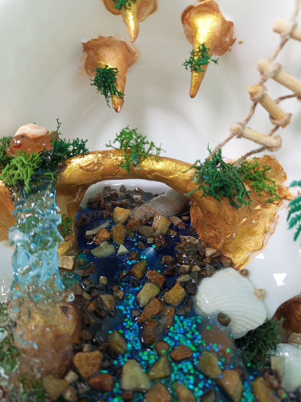 • Запуск в пещере мини-водоёма, где обитают милые фигурки животных или рыб