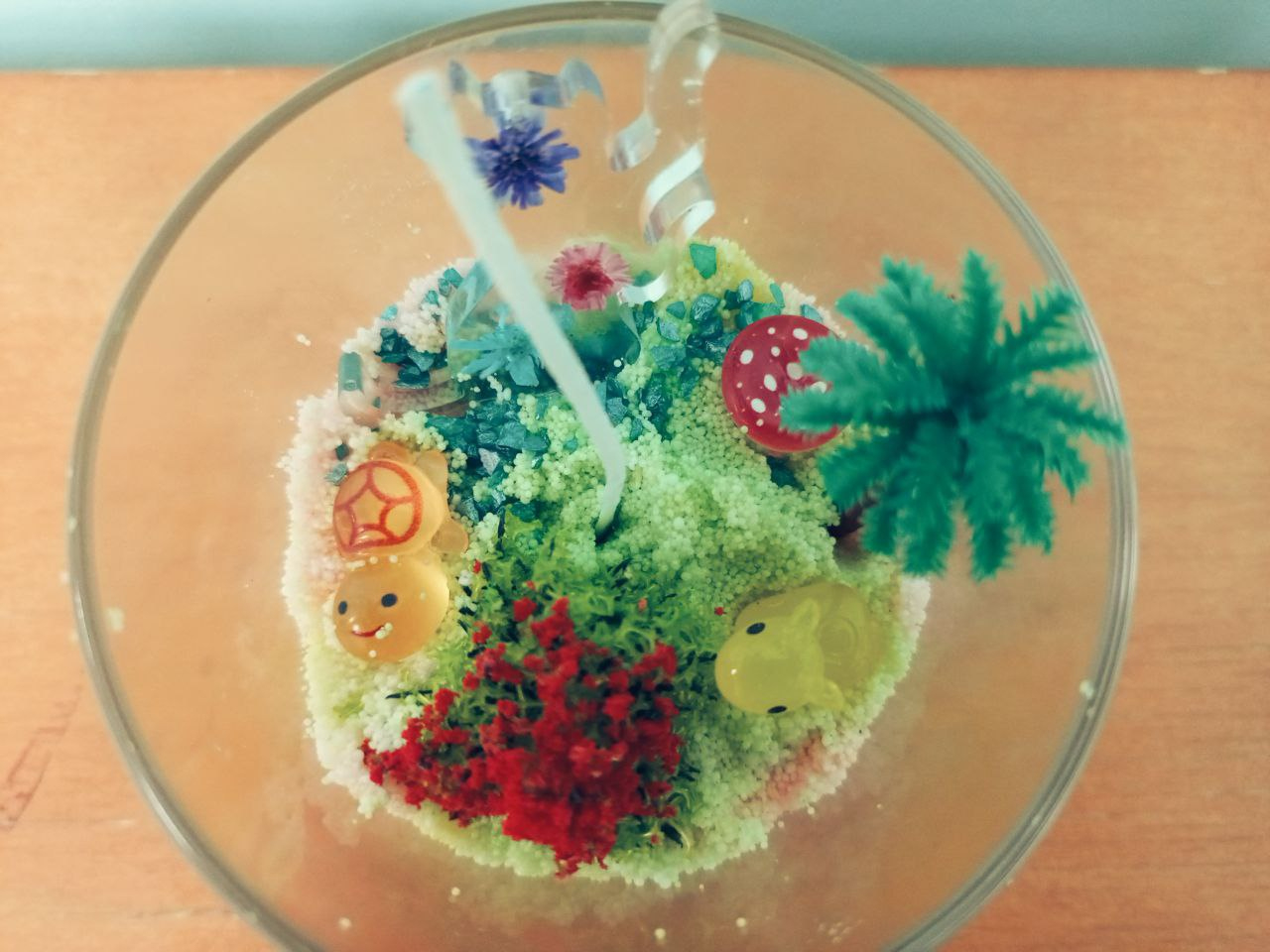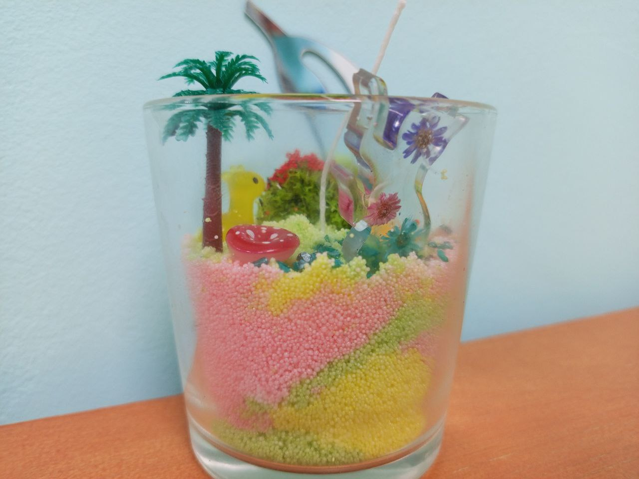 - Создание композиции из насыпного воска и декора в тематике «оазис или флорариум»