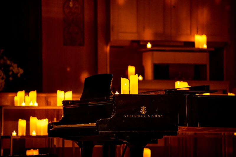 «Музыка при свечах» — цикл атмосферных концертов в Зале органной и камерной музыки «Родина» при мерцающих свечах*. Произведения классики, музыка современных композиторов, саундтреки культовых фильмов. Концертный рояль Steinway & Sons, органная акустика, создающая особенное звуковое поле с эффектом реверберации, безупречный дизайн интерьера, горящие свечи на сцене, органном подиуме и люстрах, интимный формат концерта и волшебная атмосфера.